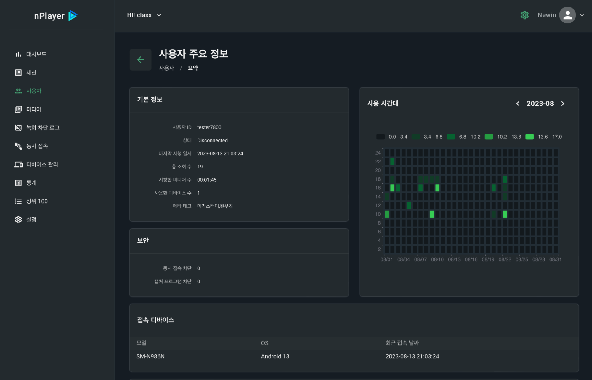 - PlaynPlay 콘솔 사이트는 PlaynPlay 앱과 연동하여, 사용자 및 세션 통계, 녹화 차단 관리, 디바이스 관리, 재생 통계, 보안 및 워터마크 관리 등 미디어 서비스에 필요한 다양한 기능들을 제공합니다.