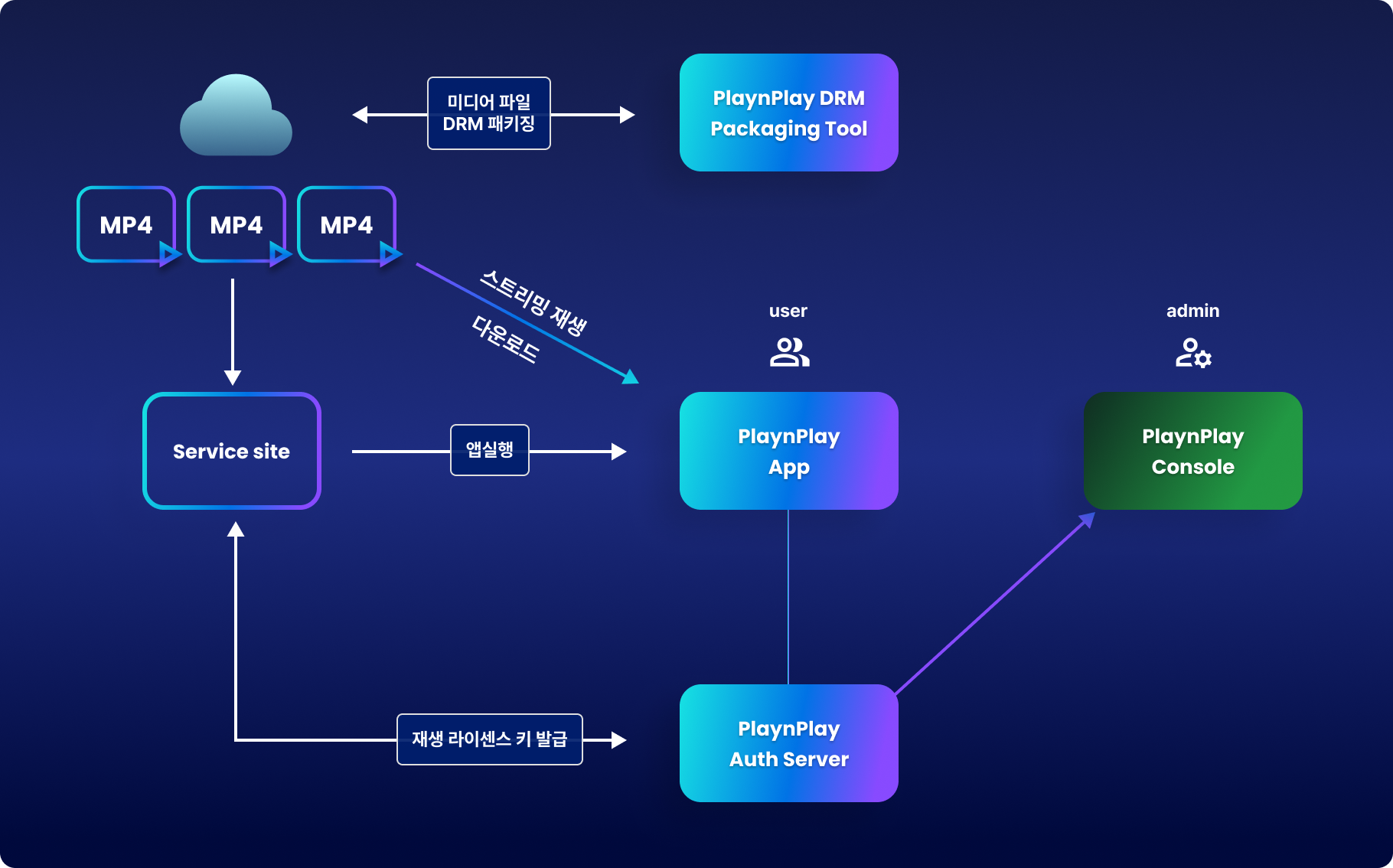 PlaynPlay는 미디어 서비스에 필요한 동영상 플레이어 부터 콘텐츠 보안, 통계, 분석 등 각종 기능들을 제공하는 토탈 미디어 솔루션입니다.